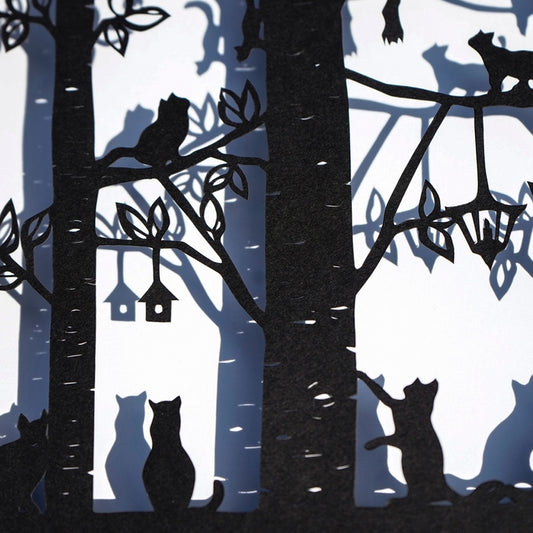 Framed Hand Cut Paper Art- Cats Plants 5 x 7