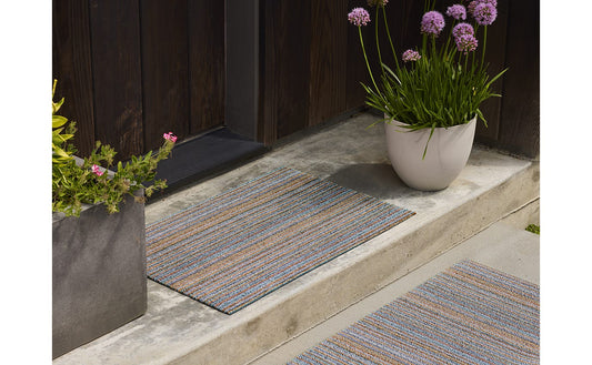 Skinny Stripe Periwinkle Shag Doormat 18x28
