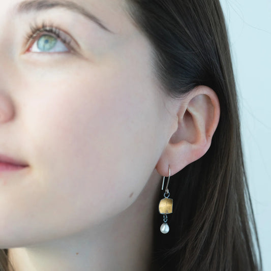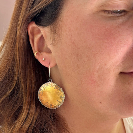 Harvest Moon Studs - 14k Gold & Ox Silver