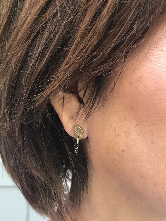 Stone Stud w/chain Earrings, Bronze