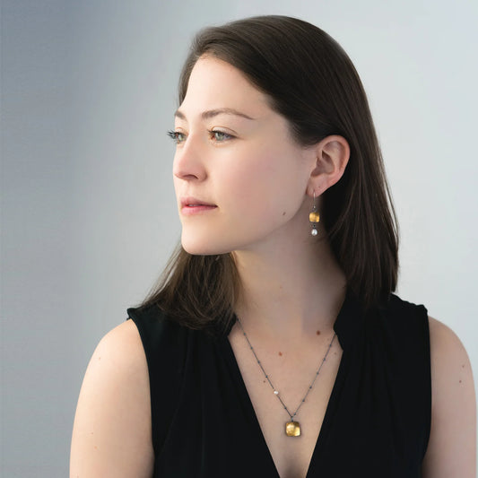 7 Stone Chain Necklace, Cocoa Pearls, Gold
