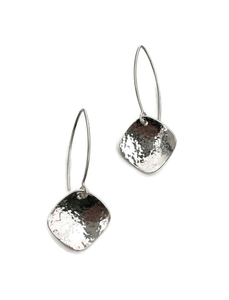 Modern handcrafted earrings from our Cushion series. Easy to wear, super versatile earrings with hammered texture. Earrings measures approx 2" long and will arrive on elegant Marquis shaped earwires.
