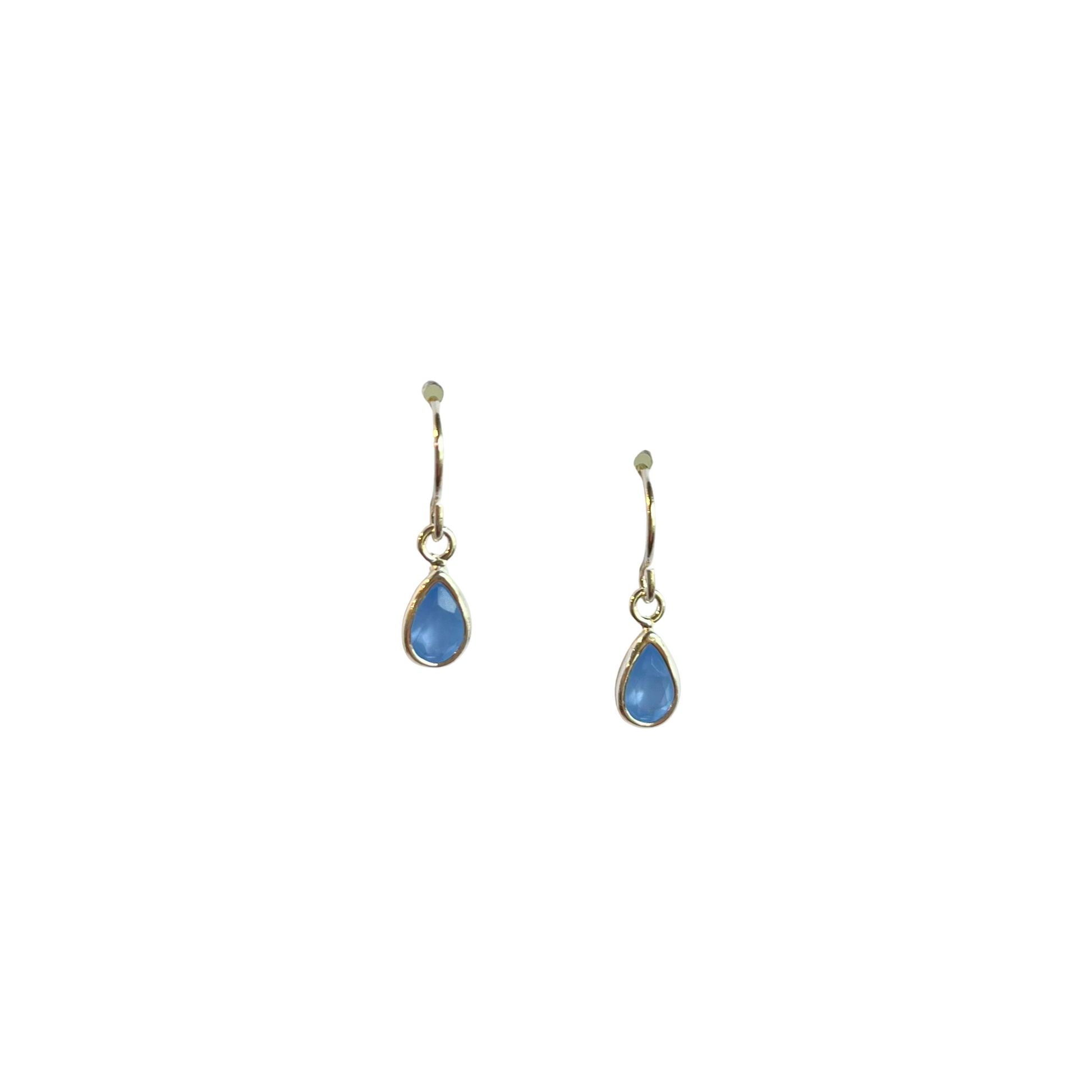 These small, drop shaped blue chalcedony earrings with a silver setting are a perfect pop of color to add to any outfit!