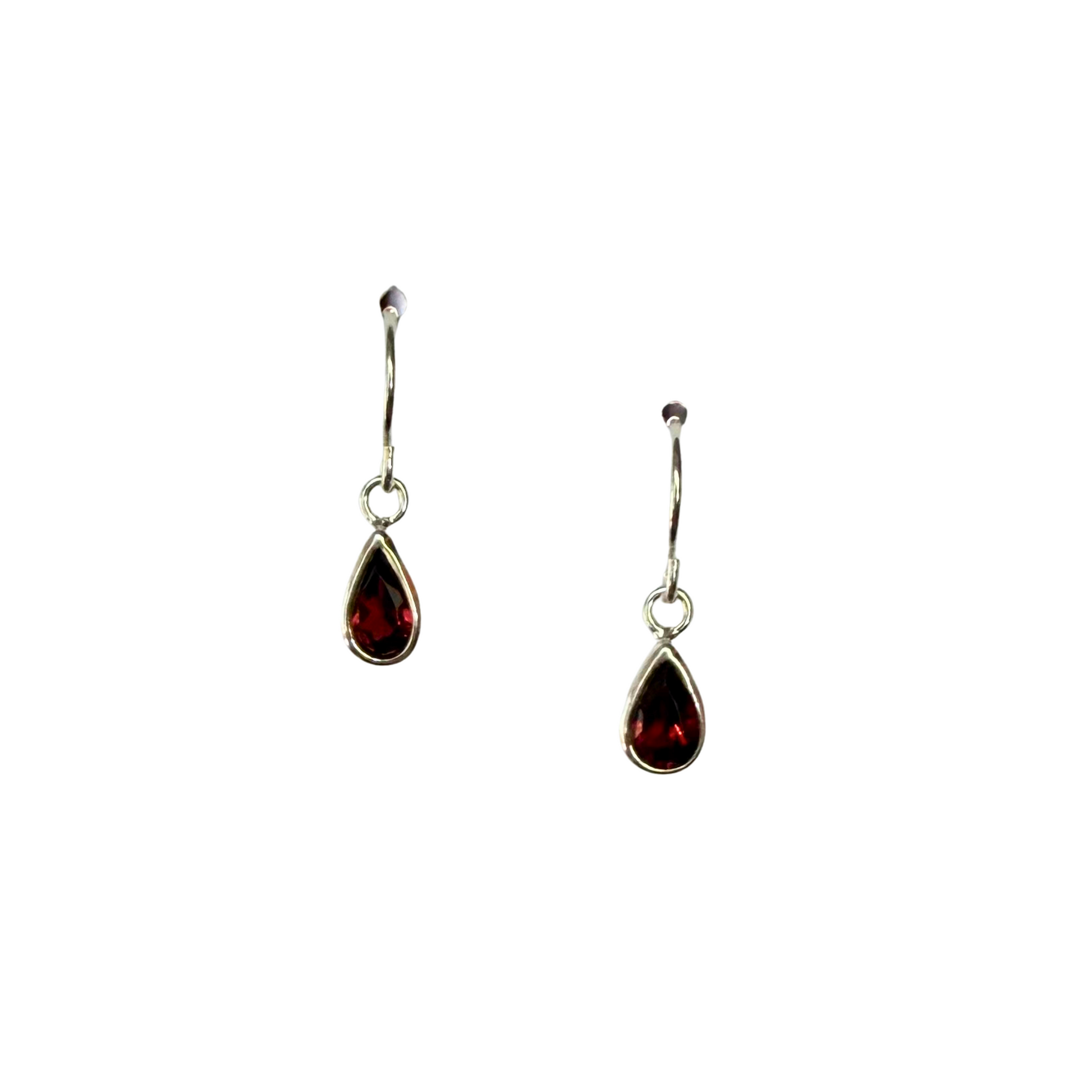 These small drop shaped garnet earrings with a silver setting are a perfect pop of color to add to any outfit!