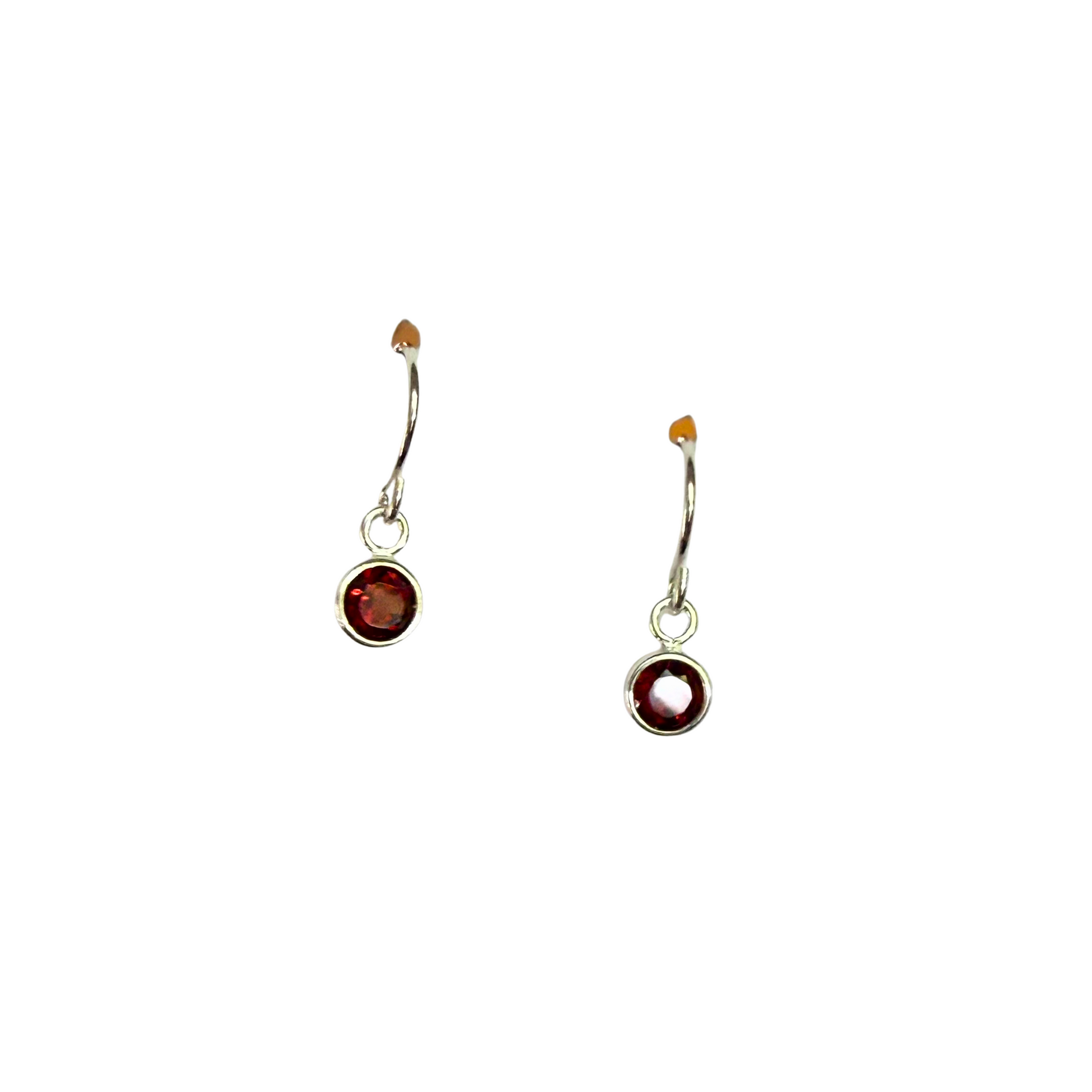 These small round garnet earrings with a silver setting are a perfect pop of color to add to any outfit!