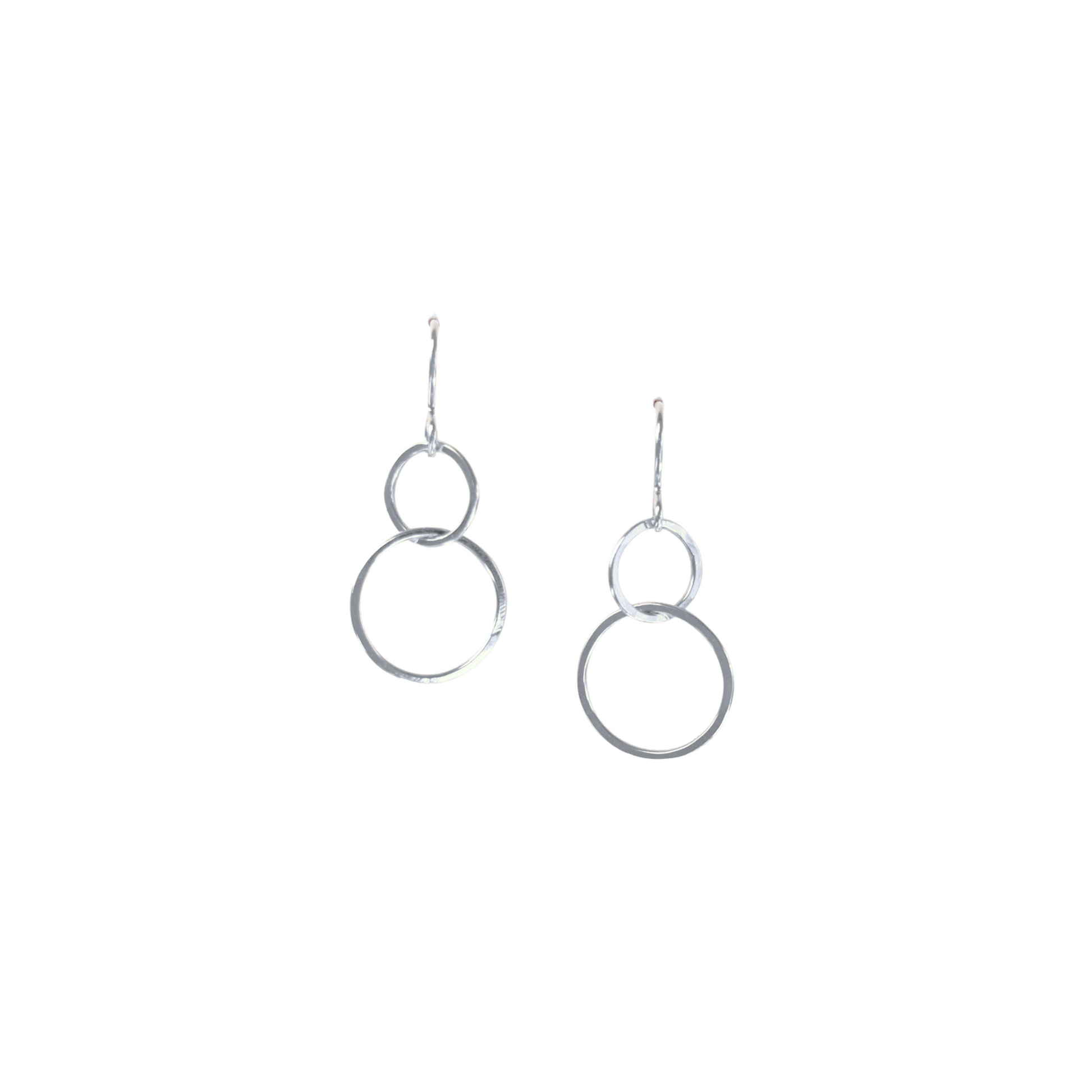 Modern hand forged earrings with interlocking circles and light catching movement. Lightweight and easy to wear all day and night.