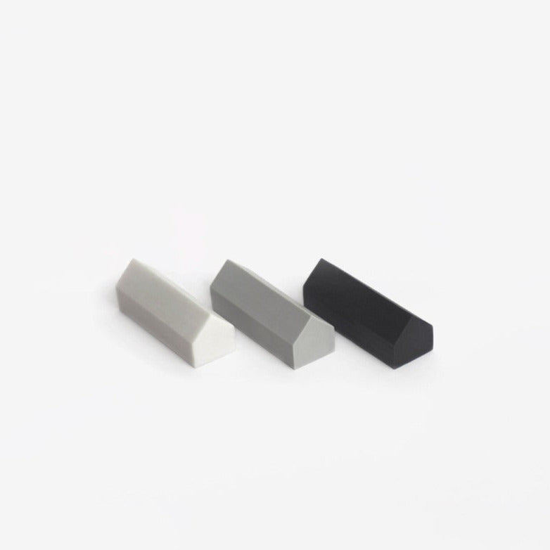 Erasing mistakes and false good ideas precisely is these erasers' function. Black, grey and white, sober and archetypal, they are made in an ecological pvc! They will bring a touch of design in your office space.