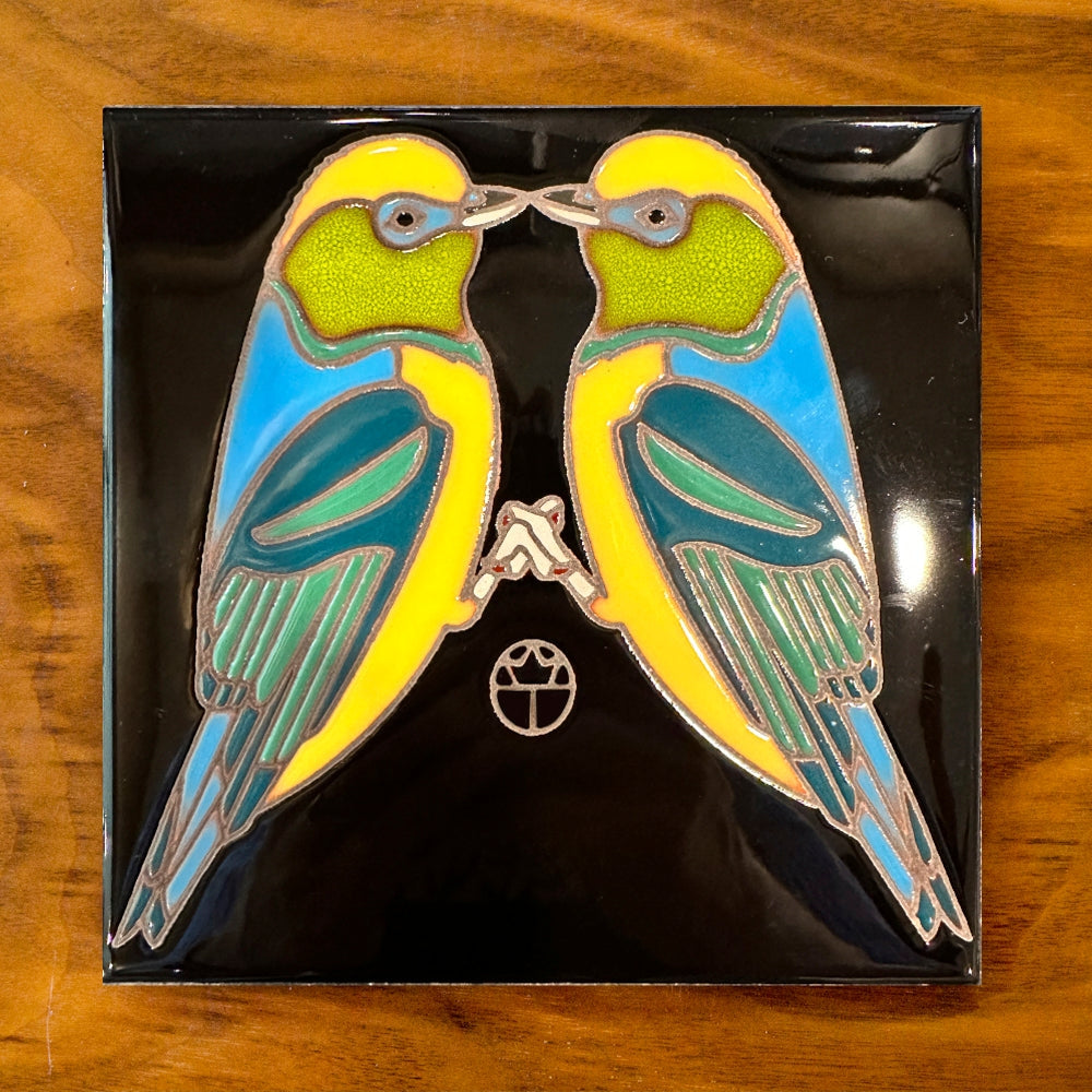 Lovebirds art tile for using as a trivet or a wall hanging.