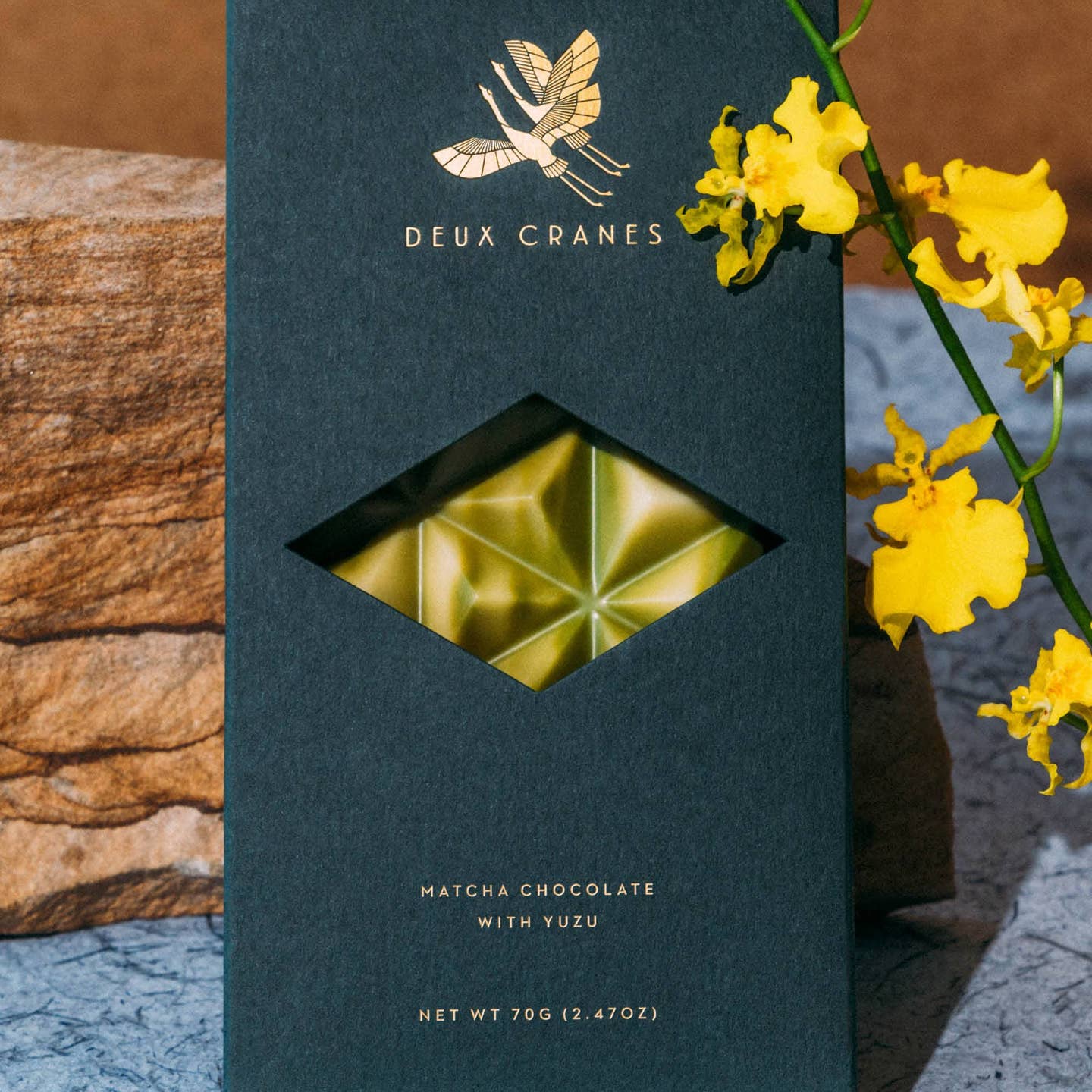 A classic matcha bar, made with creamy white chocolate and earthy matcha powder is paired with aromatic and citrusy yuzu chocolate for this new twist on a classic.