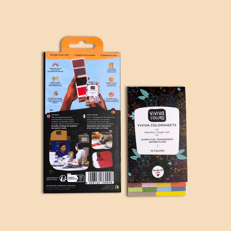 Usually, metallic colors are found opaque but Viviva Metallics are transparent which means the colors blend & mix easily with each other. As a result, you may do an entire painting with Metallics & not just limit them for highlights!