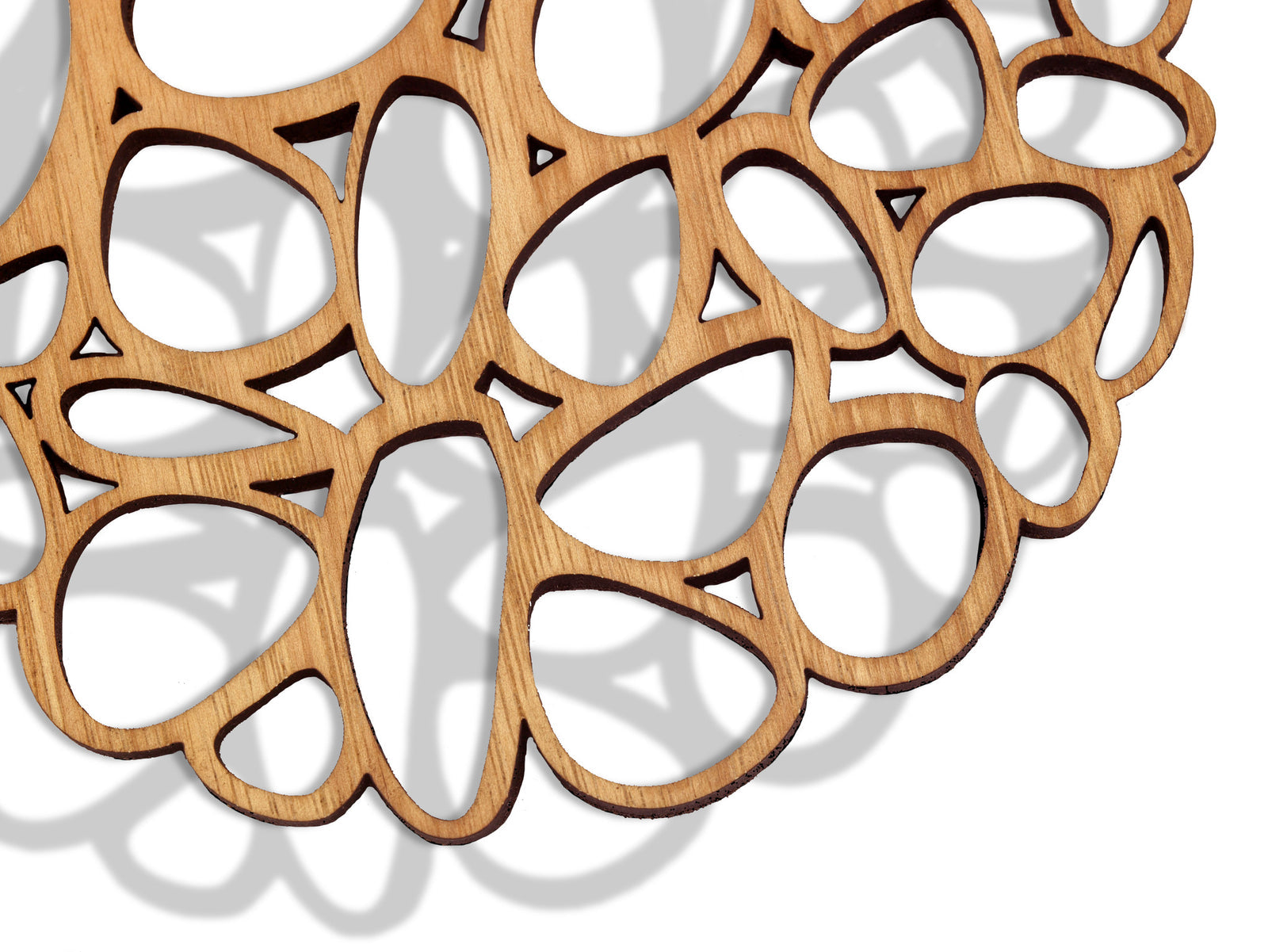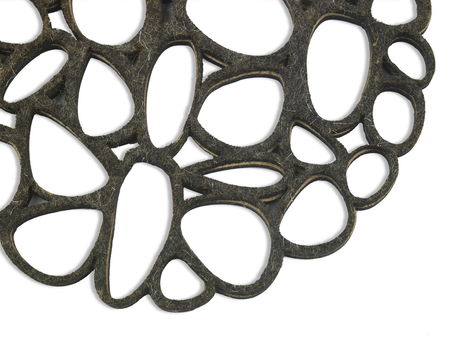 Each trivet is made from American Oak Hardwood Veneer and a composite core on one side and 100% Post-Consumer recycled felt (25% recycled carpet, 75% wool) on the other side. You’ll receive two 8” diameter TableTrivets that have been sealed with a natural, food-safe oil. The trivets are heat tolerant and water resistant but not water-proof.