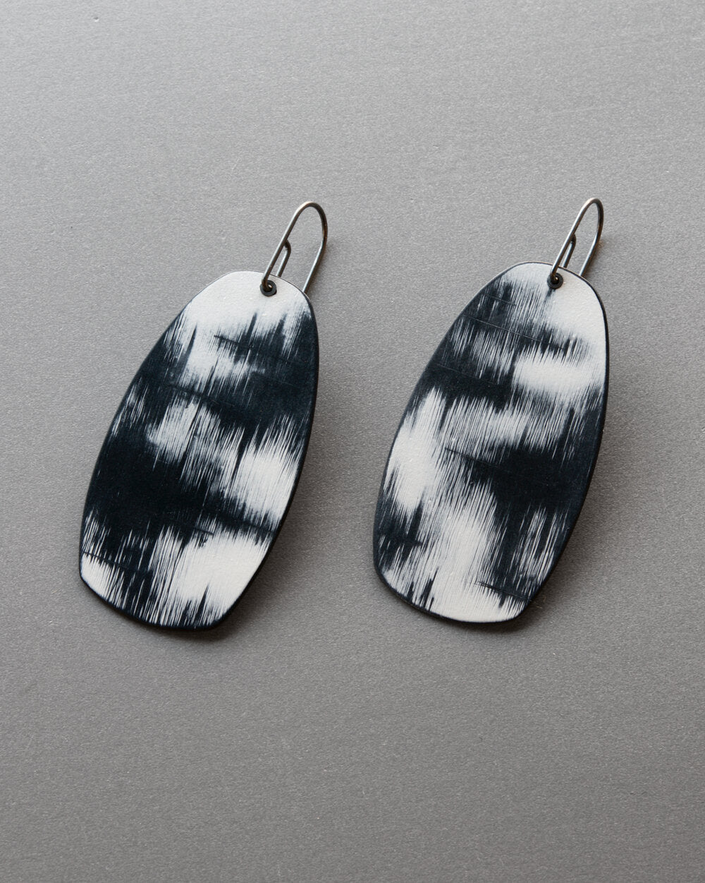 Powder-coated steel, enamel paint, oxidized sterling silver hook