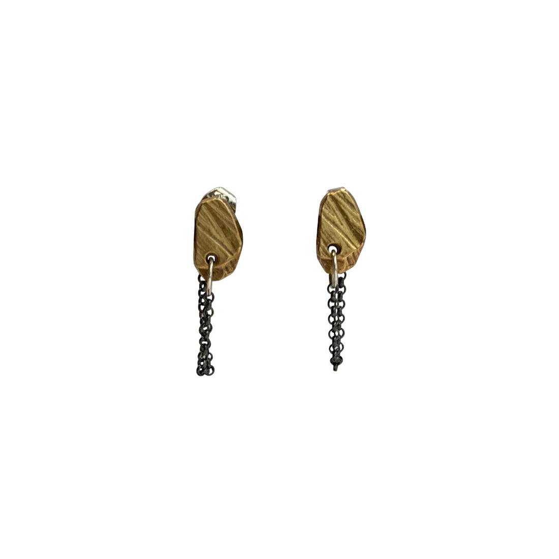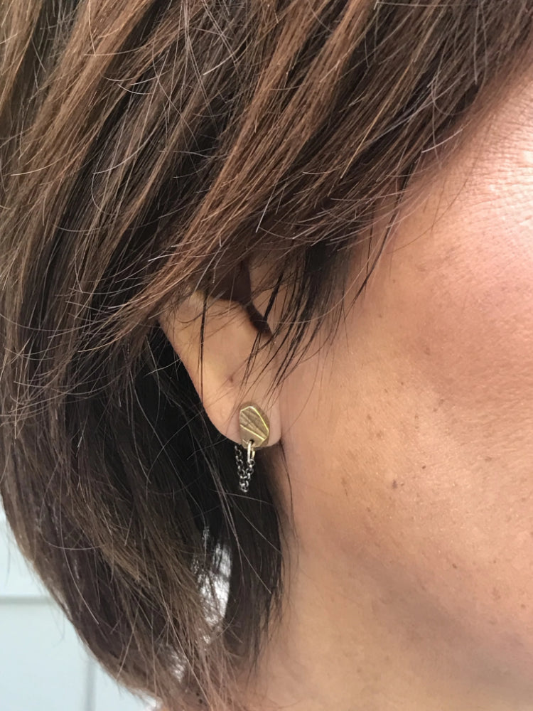 - Oxidized sterling silver chain is attached to the bottom of the stud face and connects to the earring back