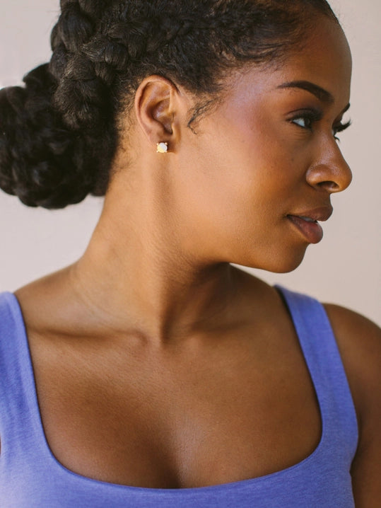 Well, hello again, Studded Bob Studs! These playful, yet sophisticated earrings are just as fun to wear as they are to say. Featuring a bold double-dip design, each stud is - you guessed it! - studded with four dot embellishments that add a touch of flair and personality. Perfectly balancing modern design with a hint of whimsy, these studs will effortlessly elevate your everyday look.